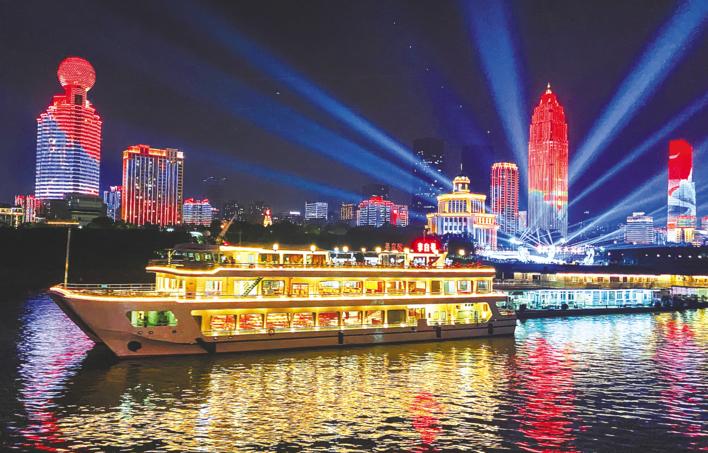 9月9日晚,長江文化藝術季開幕式進行首次彩排,長江大橋至長江二橋江段兩岸光影璀璨、炫彩奪目。長江文化藝術季將于9月14日在武漢開幕。 (湖北日報全媒記者 薛婷 攝)