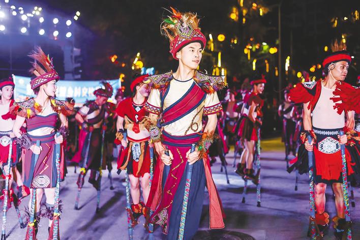 11月2日晚,第六屆荊楚鄉(xiāng)村文化旅游節(jié)在宣恩縣開幕。來自省內(nèi)各地的表演類非遺項(xiàng)目與民俗文化展演,呈現(xiàn)了一場地域特色與文化交融的民俗和民歌盛宴,給游客打造了行進(jìn)式踩街巡游體驗(yàn)。(湖北日報全媒記者 王晶 通訊員 鄂文旅 陳明 攝)
